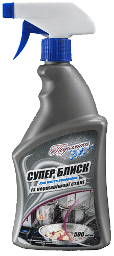 Засіб для миття поверхонь із нержавіючої сталі Подолянка "Супер блиск". Розпилювач.