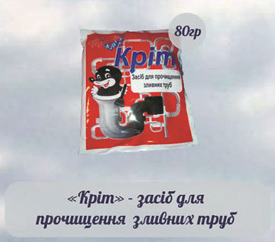 Засіб "КРІТ" для чищення та знежирення каналізаційних труб.